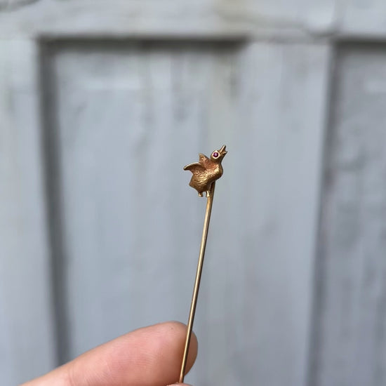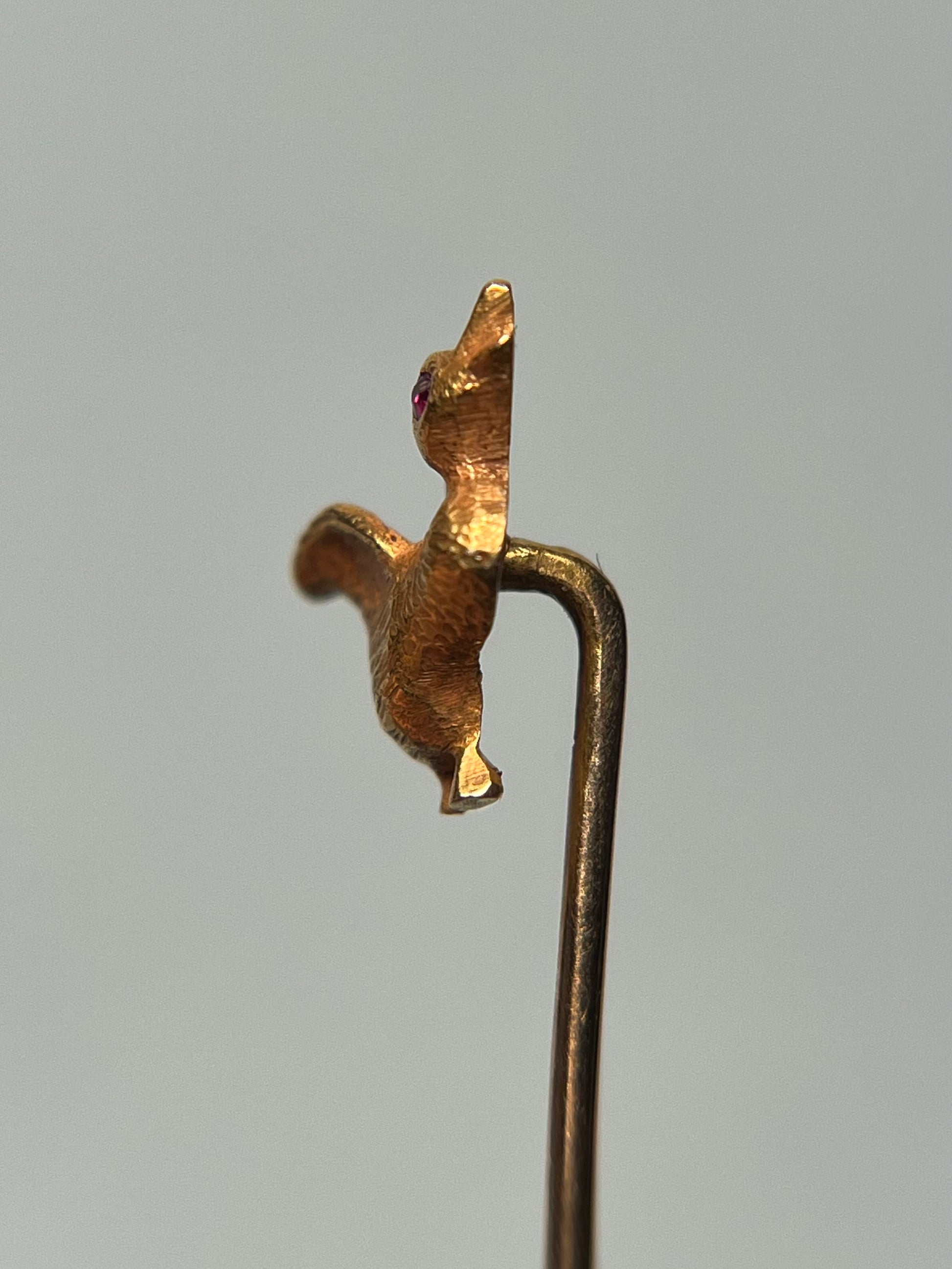 Antique 14K Gold Duckling Stick Pin with Ruby Eye and Bloomed Finish