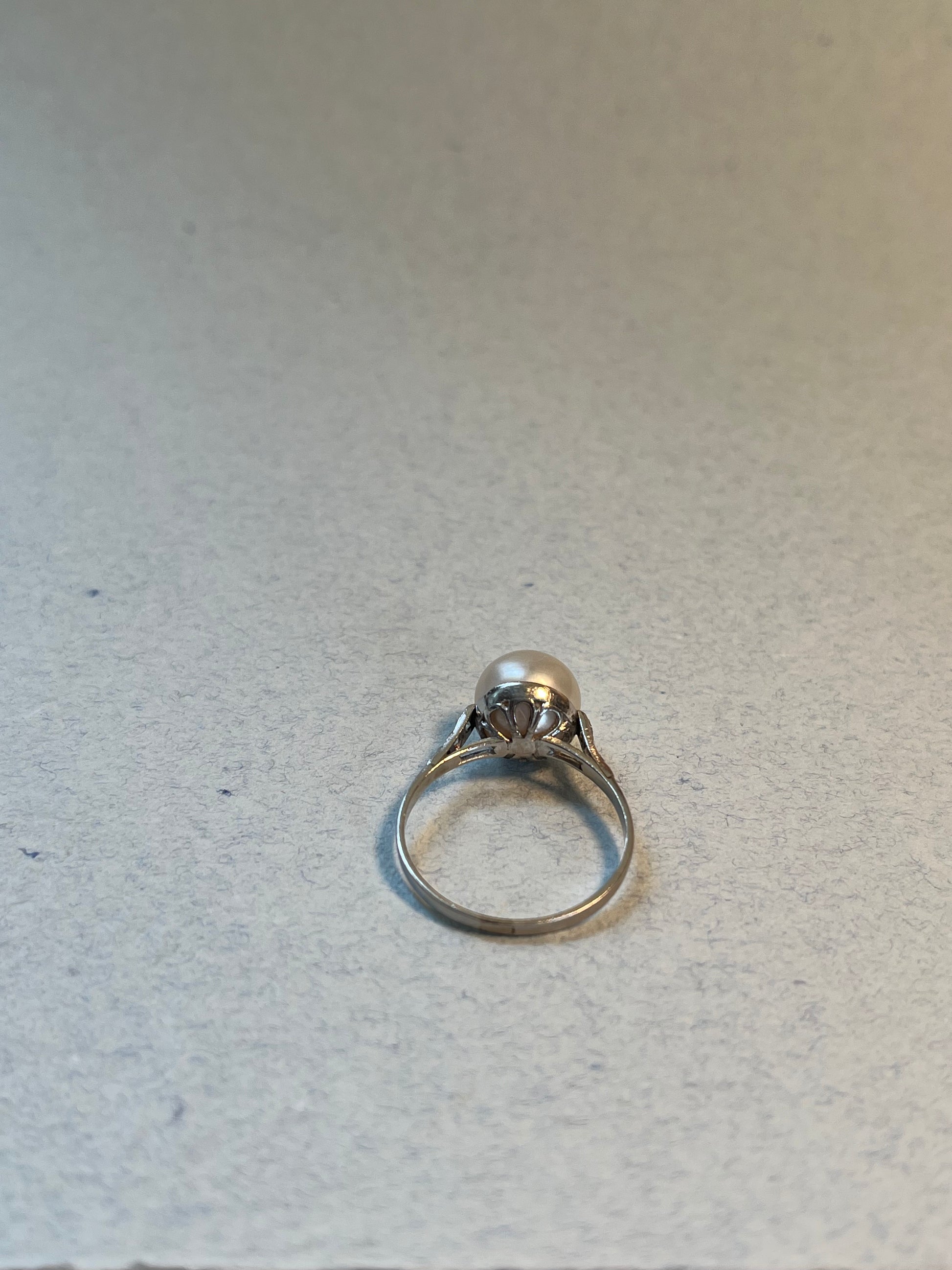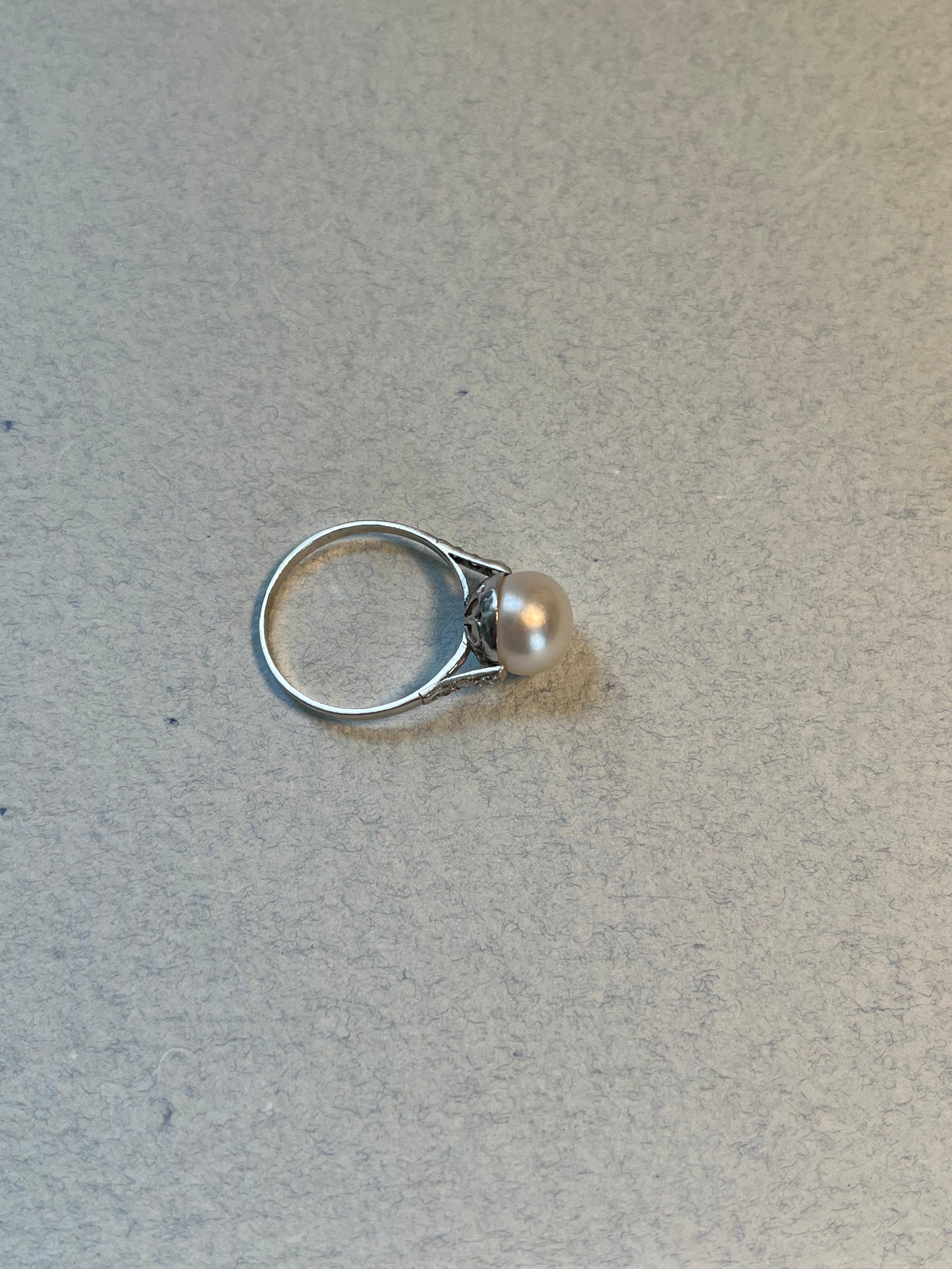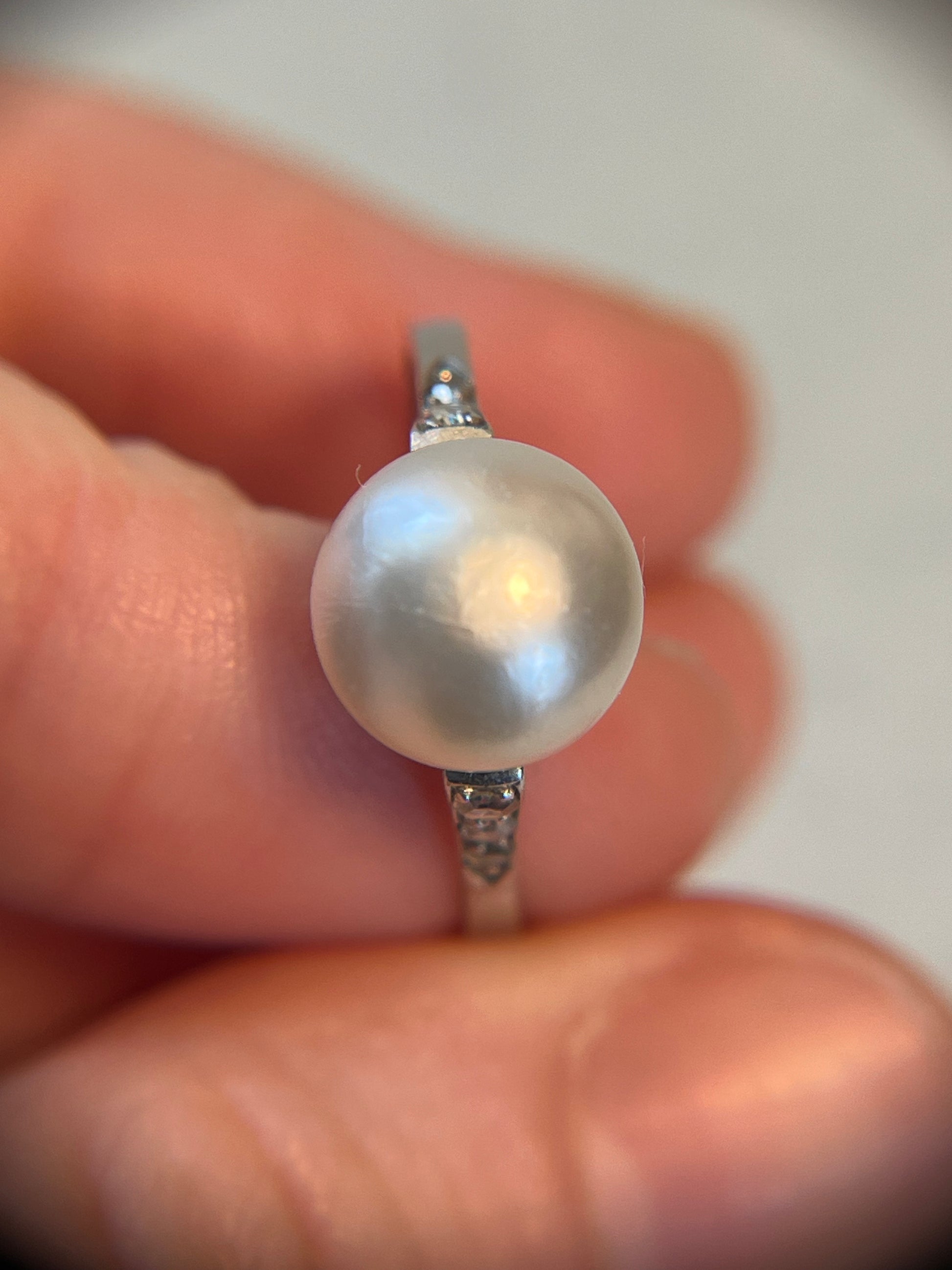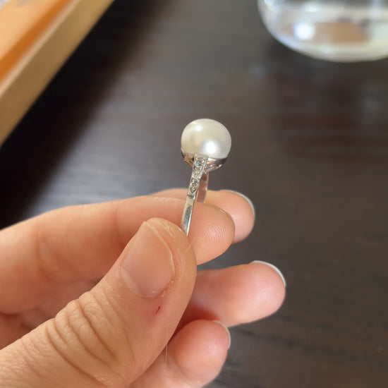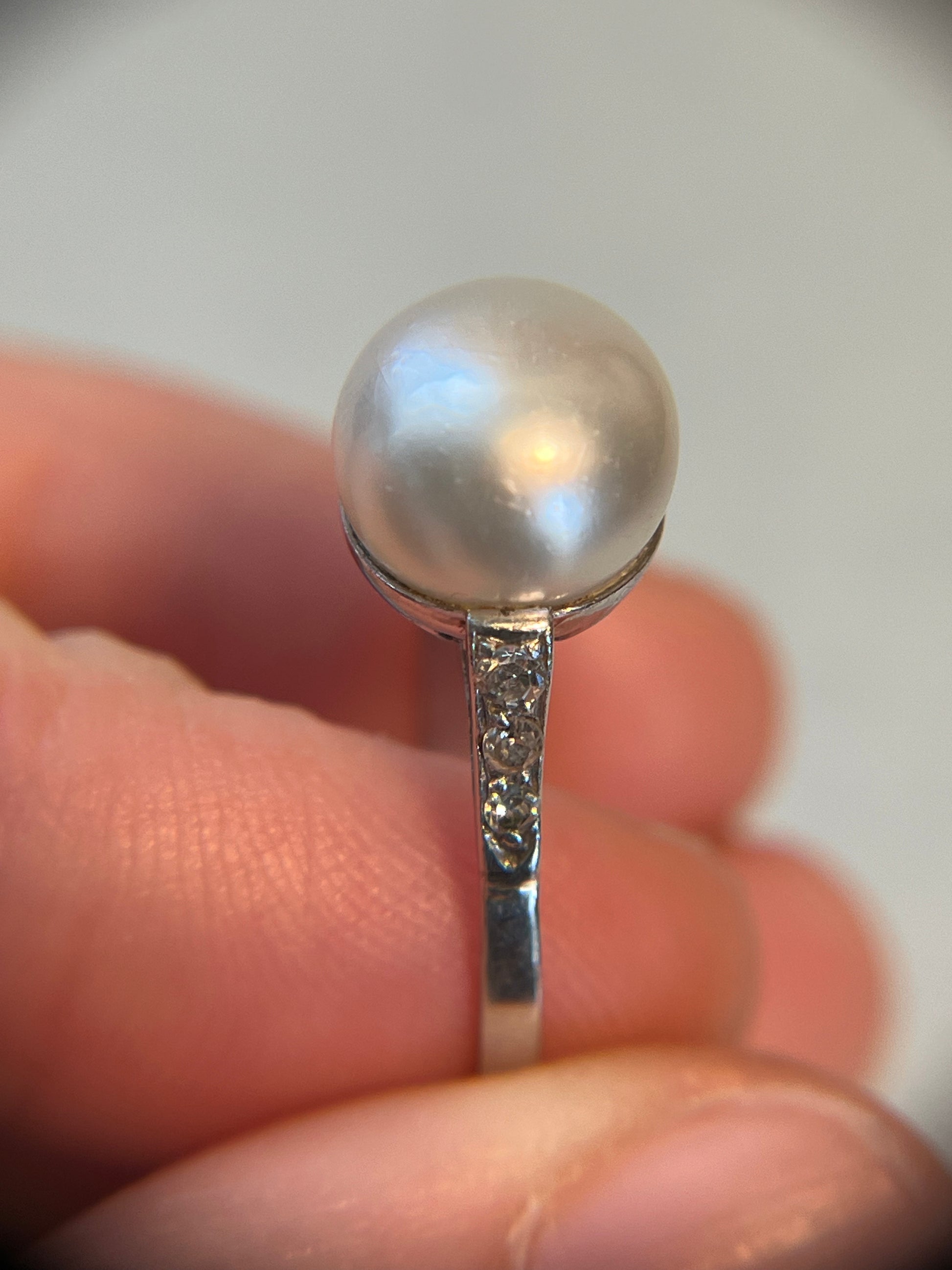 Antique Natural Saltwater Pearl Ring in Platinum with Diamonds